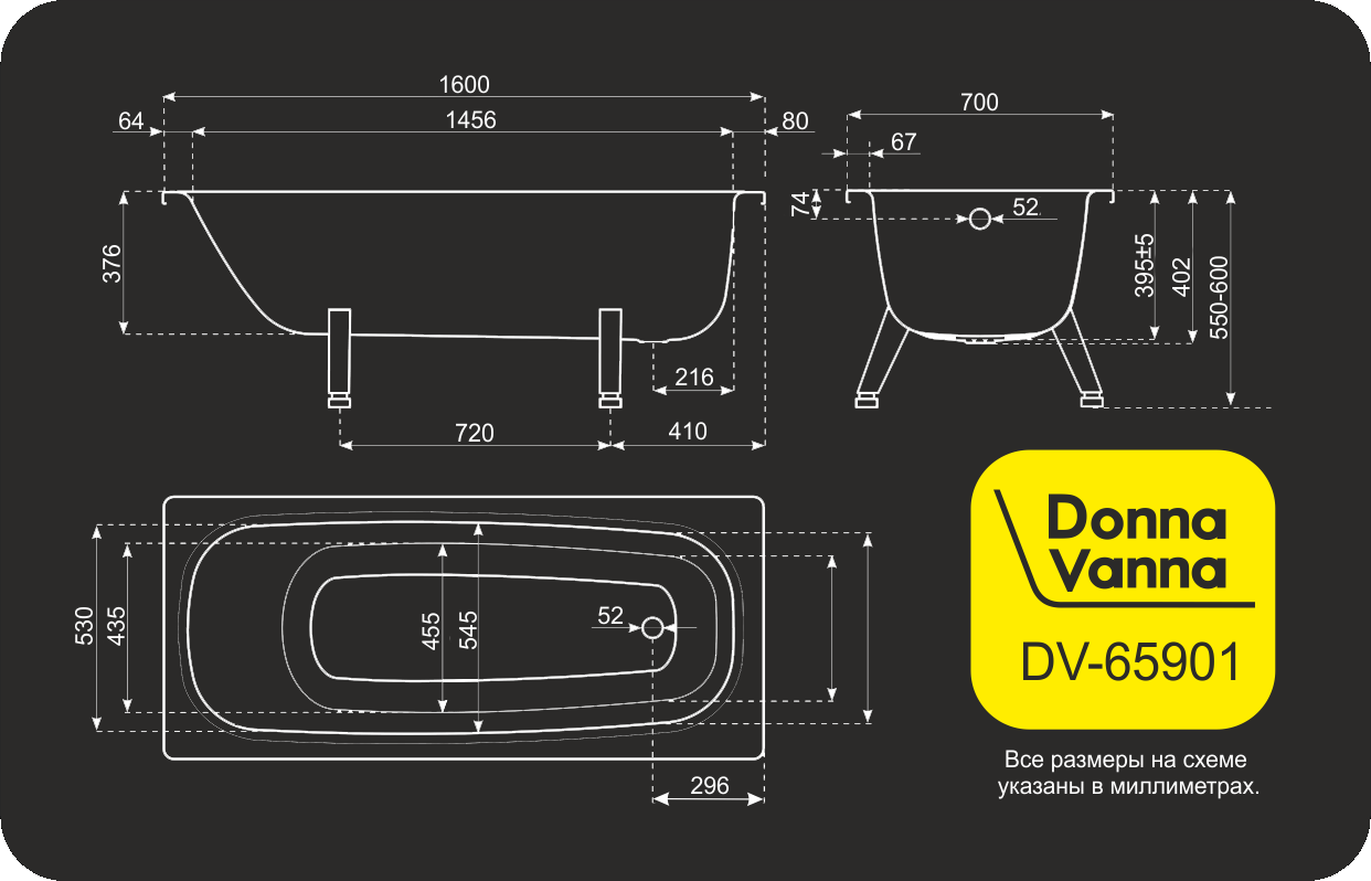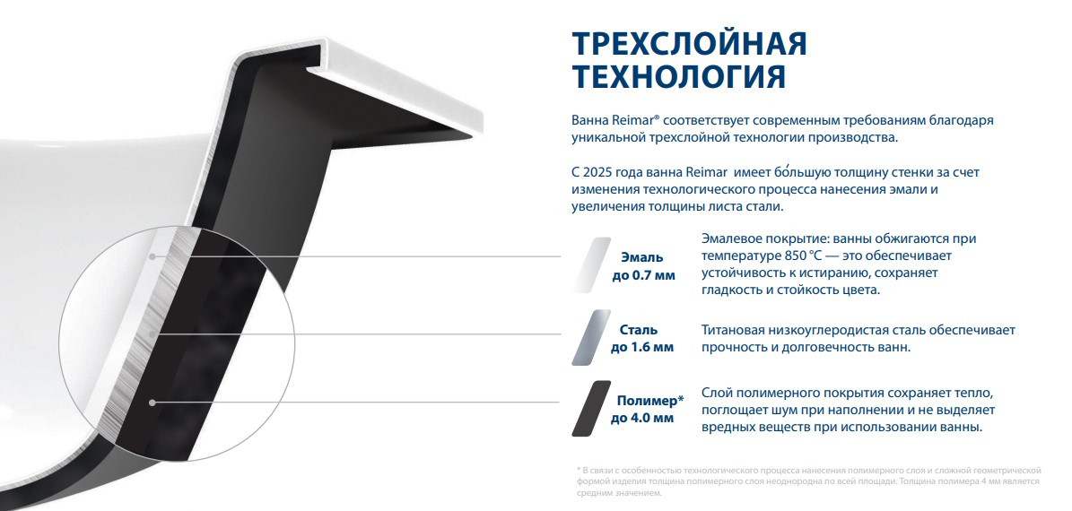 Ванна Reimar с полим. покр. 160х70 6,3мм о/п 61205