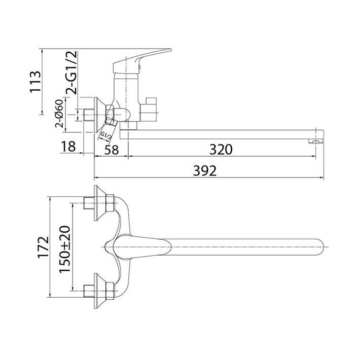 Смеситель для ванны MILARDO Simp длинный излив SIMSB02M10