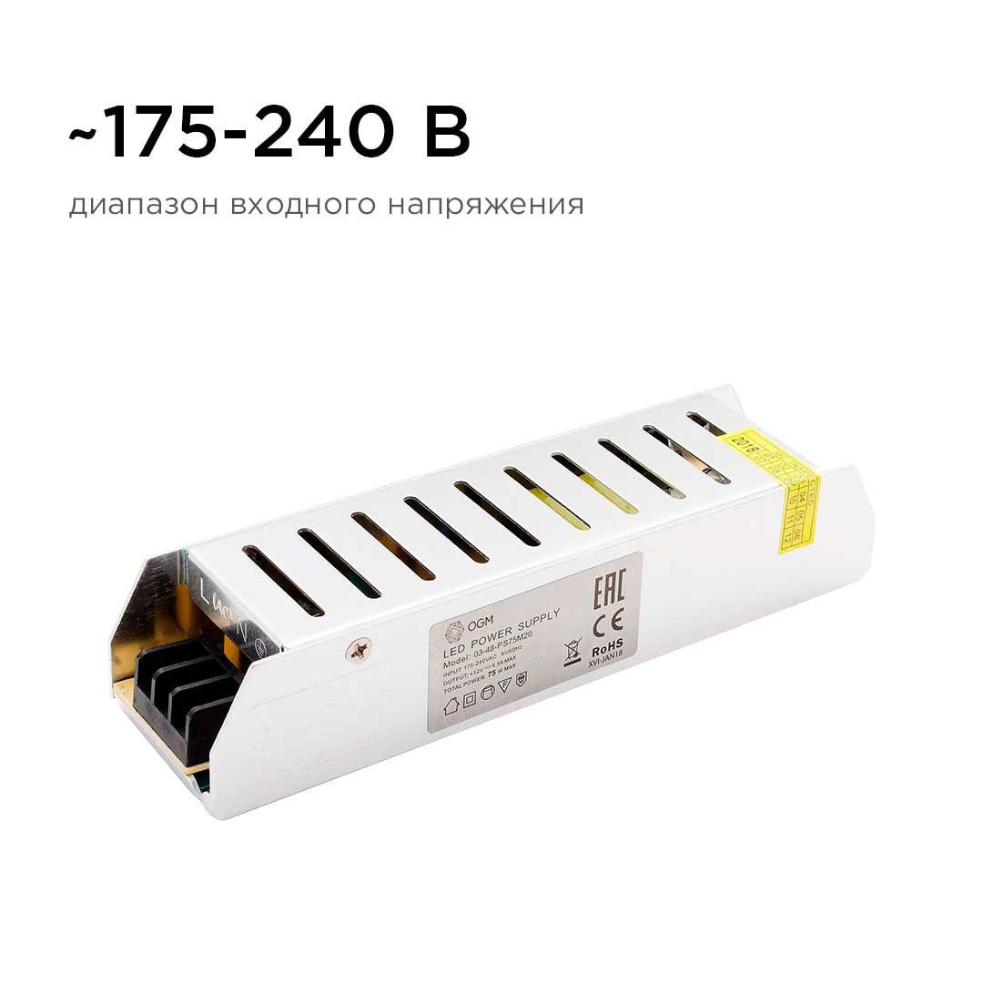 Блок питания OGM 12V 75W IP20 6,5A PS3-48